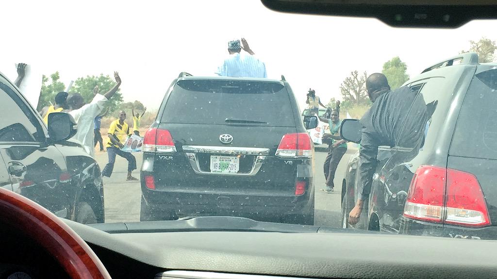 Buhari just arrived in Gombe now. Lovely welcome at the airport. Campaign will soon start....see more pics joor