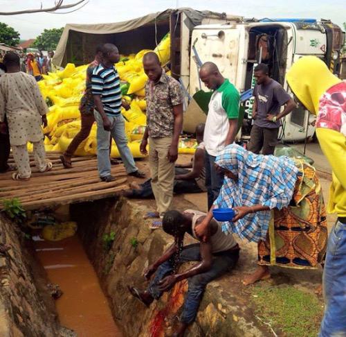 Hehehe..na wa ooooo......Another trailer accident but this time one