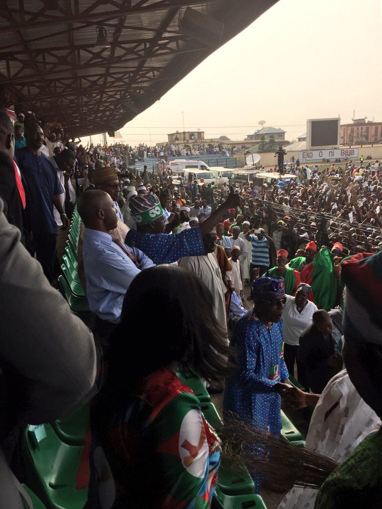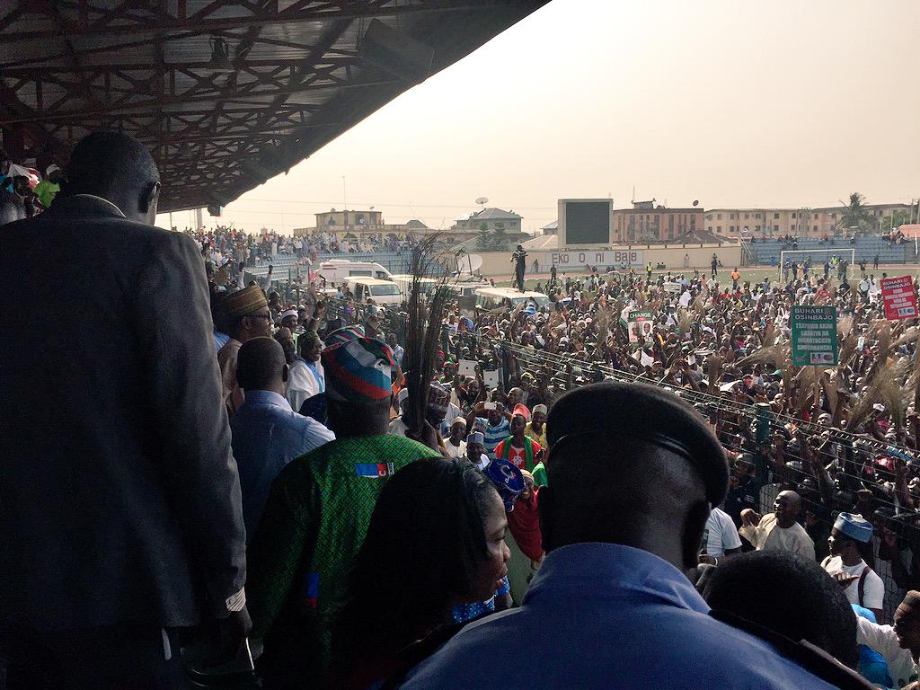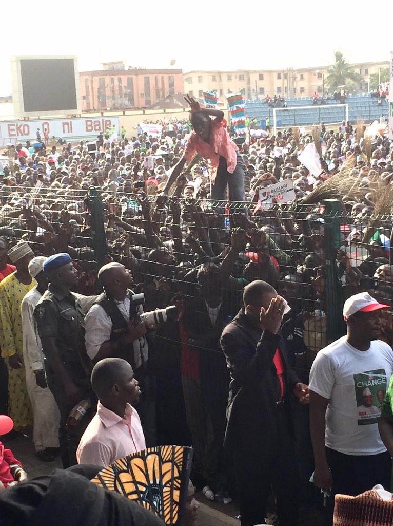 O boy this Buhari dey pull crowd ooo..hehehe.. wetin dey happen..the man fit win oooo...It's a big crowd and the are very excited to see