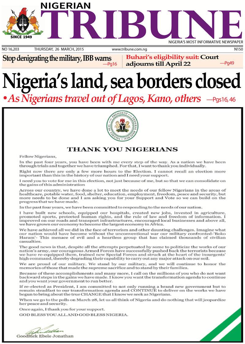 Pres Jonathan wrote a letter in Tribune Newspaper today ...see