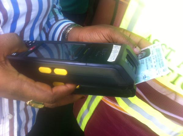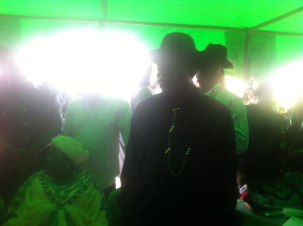 This is the arrival of President Jonathan at the arrival in his polling unit..heehe...but small problem in the card reader...see more pics abeg...1st 2nd and 3rd card reader failed...but he has been finally accredited....