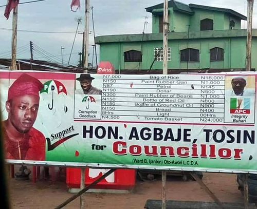 campaign bill board of a Peoples Democratic Party (PDP) councillorship