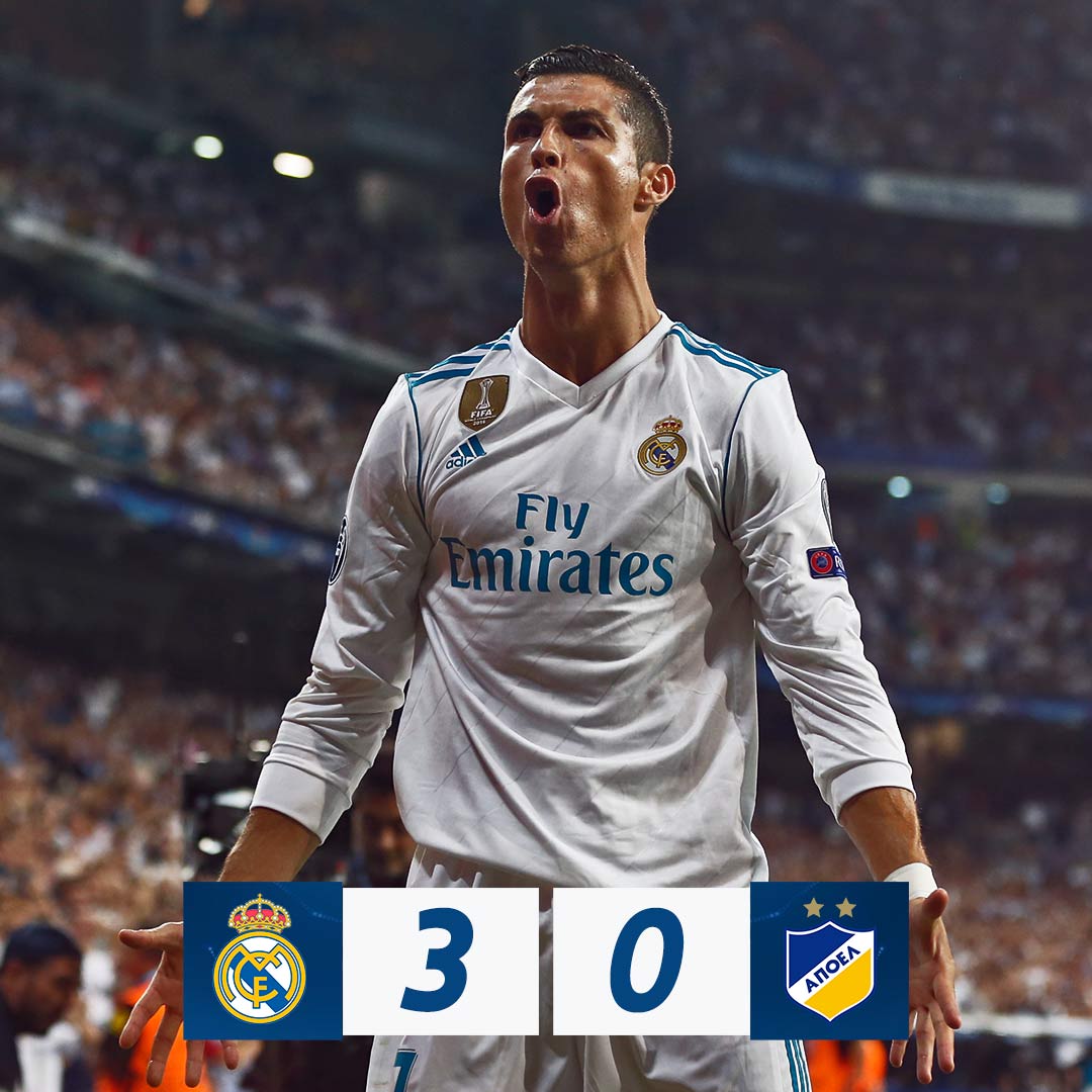 Hehehe.....Cristiano Ronaldo scored twice, as Real Madrid defeated APOEL Nicosia 3-0 in the Champions League on Wednesday night.