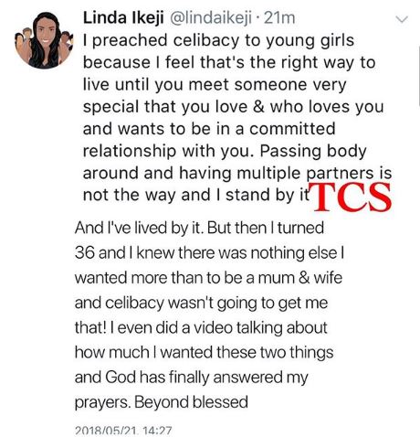 Charly Boy wrote: "That Linda Ikeji is pregnant is no longer news, women are getting pregnant by the hour and some don't even want the baby.