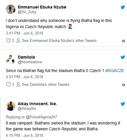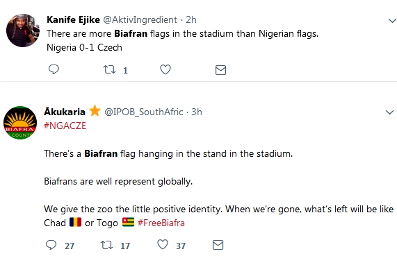 several Biafra flags were spotted at the stadium, and shortly after the