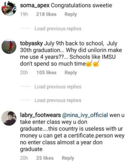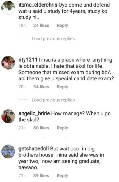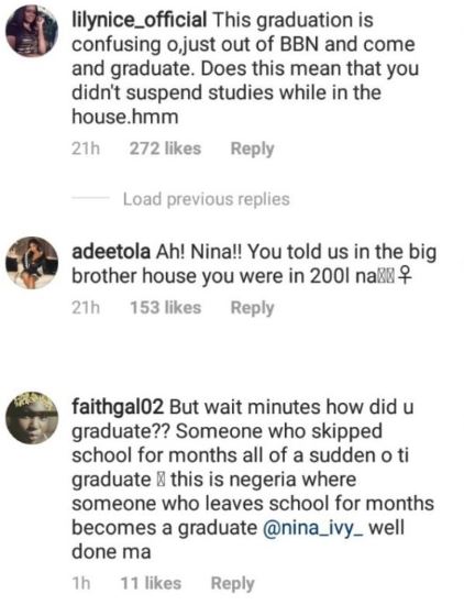 Fans of former Big Brother Naija housemate, Nina, have reacted after she announced that she is graduating from school.