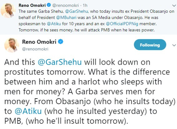 HEHE.........There is no difference between Garba Shehu and prostitutes that sleep with men for money- Reno Omokri