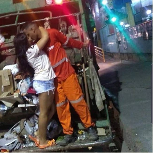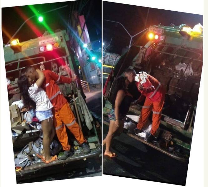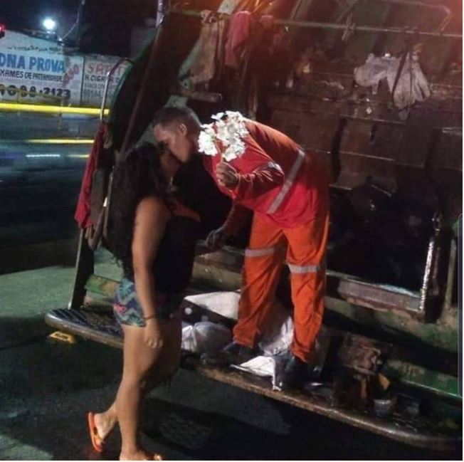Check out these viral photos of a lady kissing her man who is sanitation worker as they share romantic photos together.