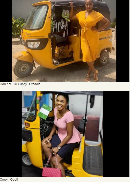 Bajaj Auto of Pune, India is the world's largest manufacturer of auto rickshaws. Nigerians have been gathering pictures of prominent Nigerians riding in them ranging from Desmond Eliot, DJ Cuppy, Omoni Oboli and others.