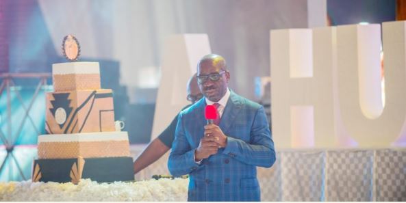"We are warning the suspended national chairman (Adams Oshiomhole), if he continues his activities in Edo State, I will show him that I am the governor of Edo State," Obaseki said amidst cheers.