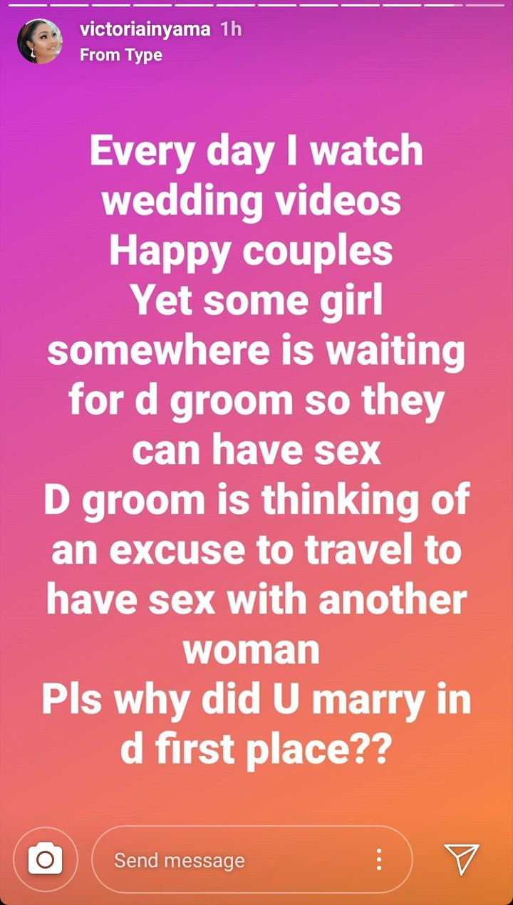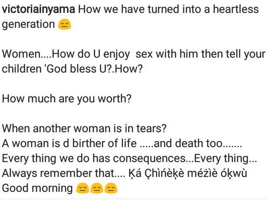Nigerian actress, Victoria Inyama has slammed the many side chic who now break homes across the country. Nollywood actress, Victoria Inyama has slammed women who break families with their sexual prowess.