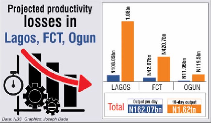 For the ten working days that the lockdown is expected to last, about N119.5bn is projected to be lost in terms of productivity.