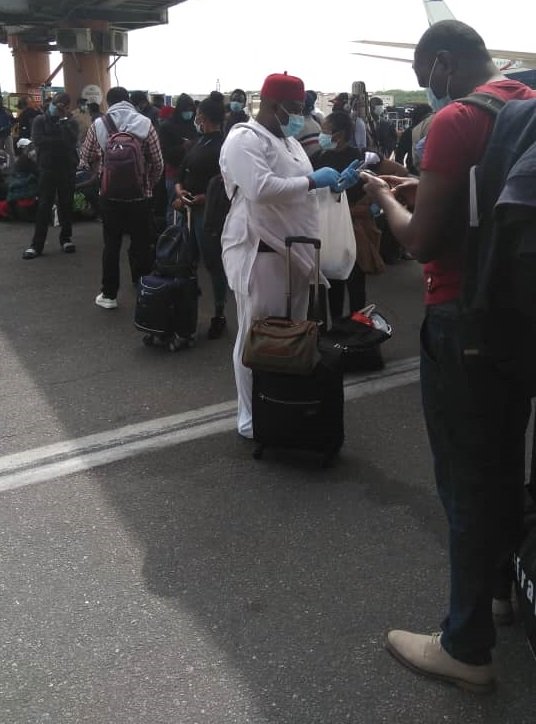 Photos have emerged showing the Nigerians who arrived in Lagos after they were evacuated from the UK. We reported earlier that some Nigerians have arrived Lagos after being evacuated from the United Kingdom. Now, photos of those Nigerians have emerged.