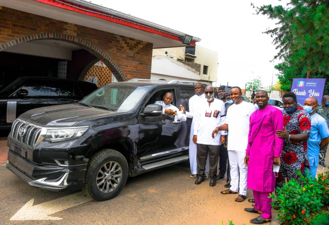 Ondo State Governor, Rotimi Akeredolu has presented the Deputy Speaker of the State House of Assembly, Rt. Hon. Samuel Aderoboye, a 2020 model of Prado SUV and a Toyota Hilux.